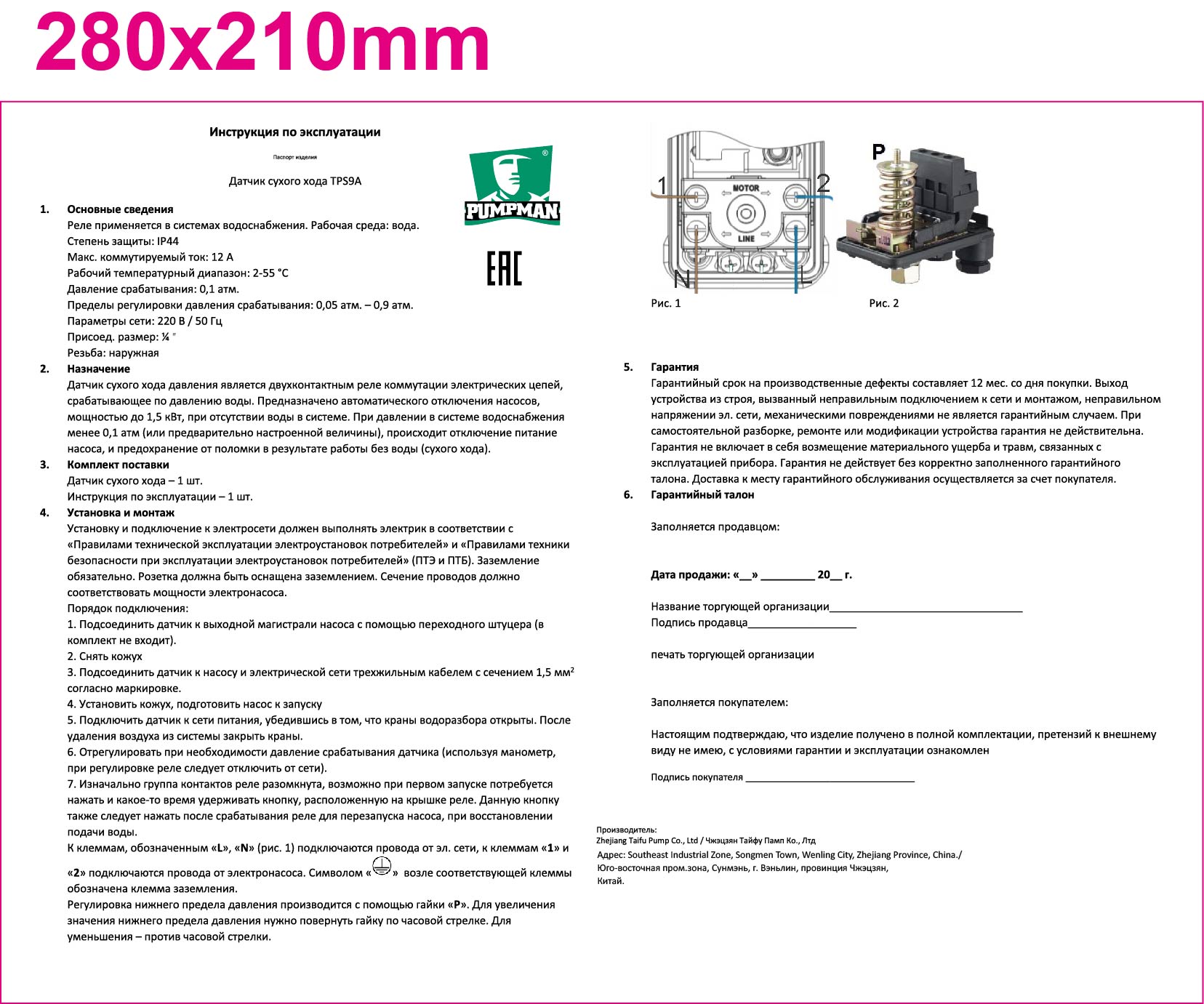 Реле защиты от сухого ходы является двухконтактным реле коммутации электрических цепей, срабатывающее по давлению воды. Предназначено для автоматического отключения насосов, мощностью до 1,5 кВт, при отсутствии воды в системе